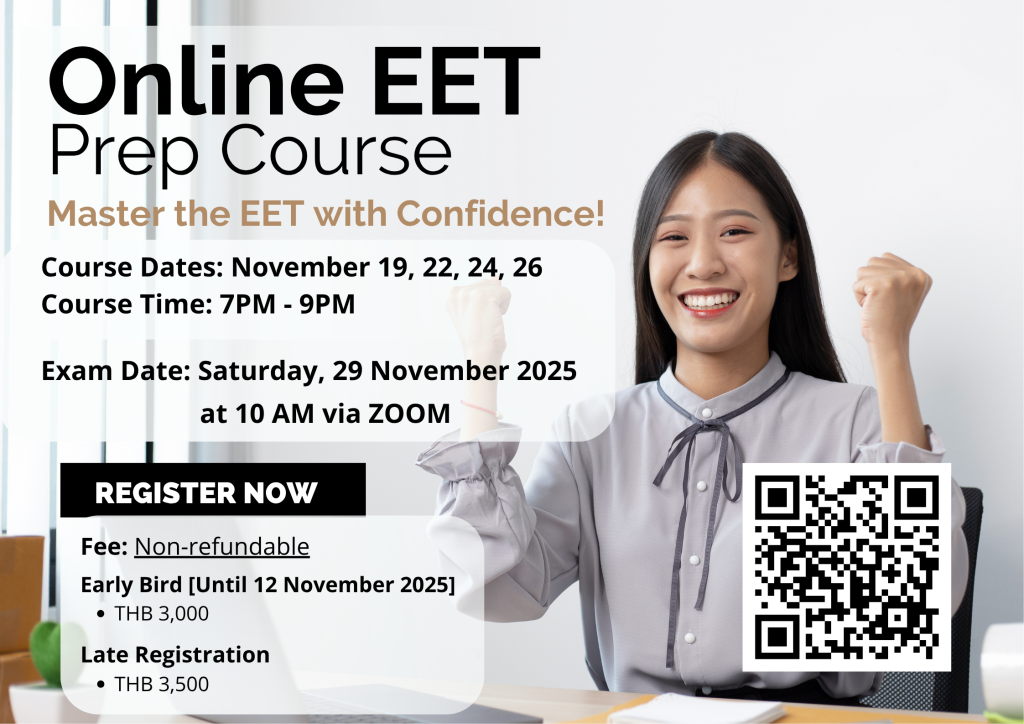 Please note that the EET is exclusively intended for AIT applicants. Test results will not be valid if taken by individuals who are already enrolled as AIT students.